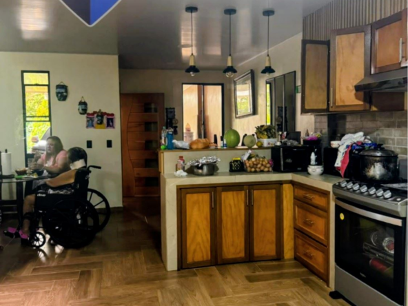 Concepto abierto de Sala, Comedor y Cocina. Cocina equipada con pantrie y acabados modernos.