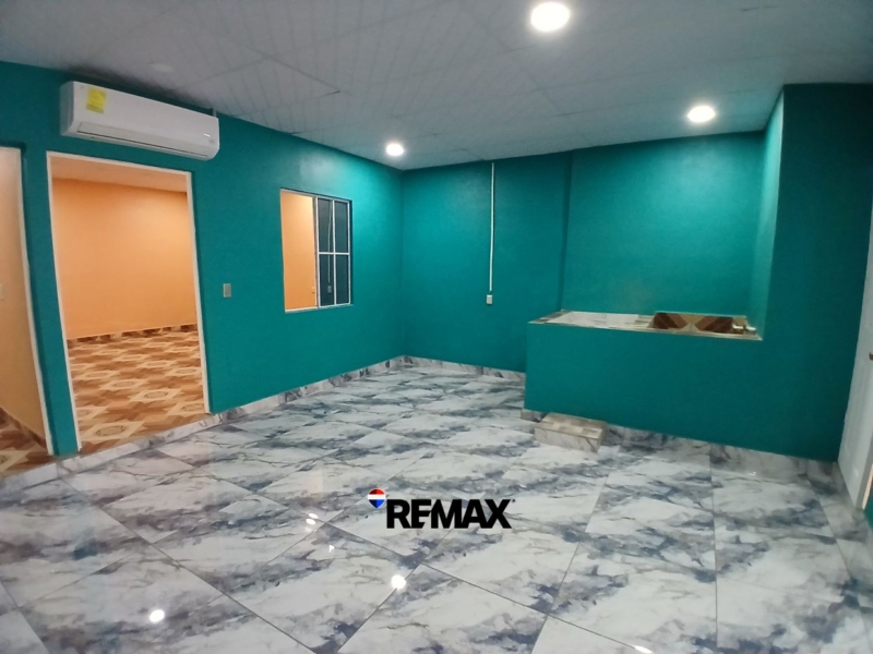 Pisos de cerámica, cielo falso de tabla roca, ventanas francesas, luminarias incandescentes.